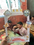 Suasana semakin hidup ketika siswa diajak praktik langsung membuat celengan dari bahan sederhana. Anak-anak tampak bersemangat menghias celengan masing-masing, sambil saling menunjukkan hasil karya mereka. Salah satu mahasiswa menyampaikan pesan kepada anak-anak: “Mulailah menabung dari uang jajan sedikit demi sedikit. Nanti kalau rajin, kalian bisa membeli sesuatu yang bermanfaat tanpa harus merepotkan orang tua.”